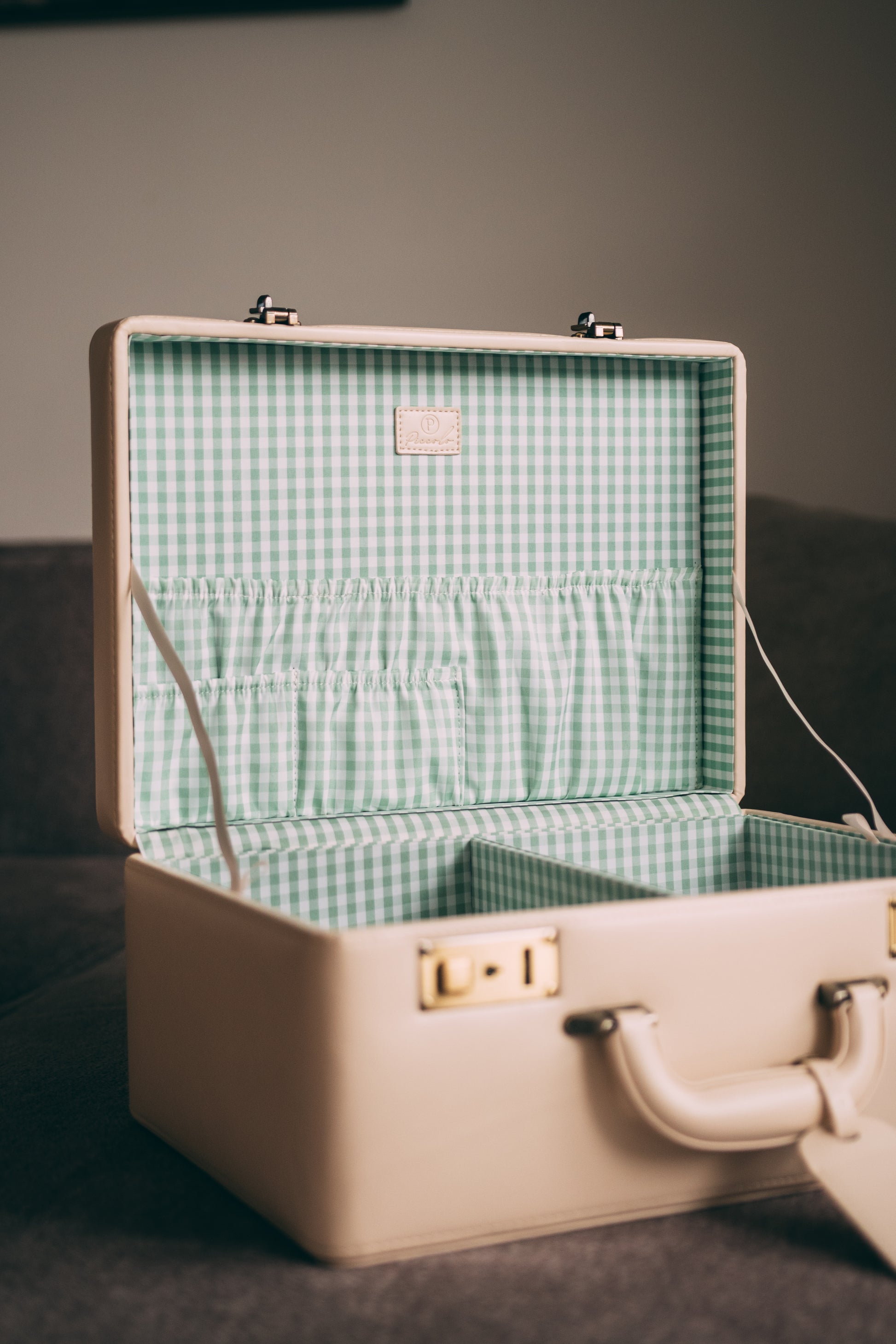 Bež kofer - klasičan izvana dok iznutra skriva topli, zeleni svijet. U njega stanu prvi crteži, male čarapice, pismo koje još nije napisano i miris prvog ljeta. Neka ovaj kofer postane mala oaza uspomena koju ćete otvarati godinama - svaki put s jednakim osmijehom.